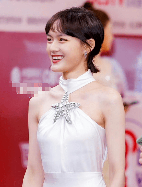 不过这条礼裙给人的感觉太活泼了,有些不适合蓝盈莹的气质,一群人合照时还是曾黎更抢眼些。