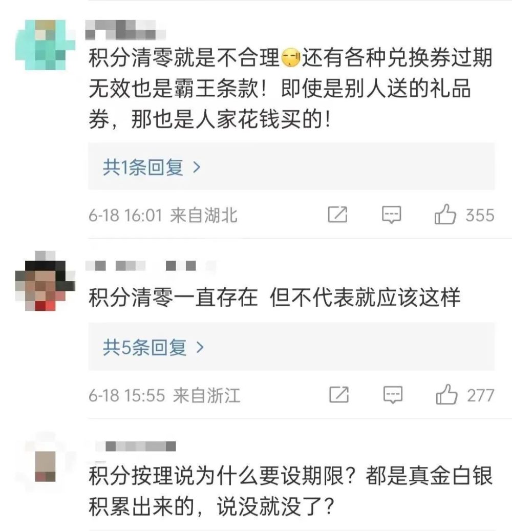 有人表示:“积分清零不合理”,“真金白银积累下的积分为何要设期限?”