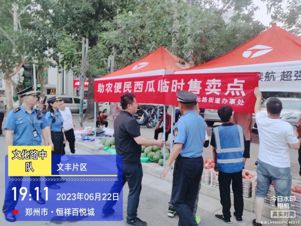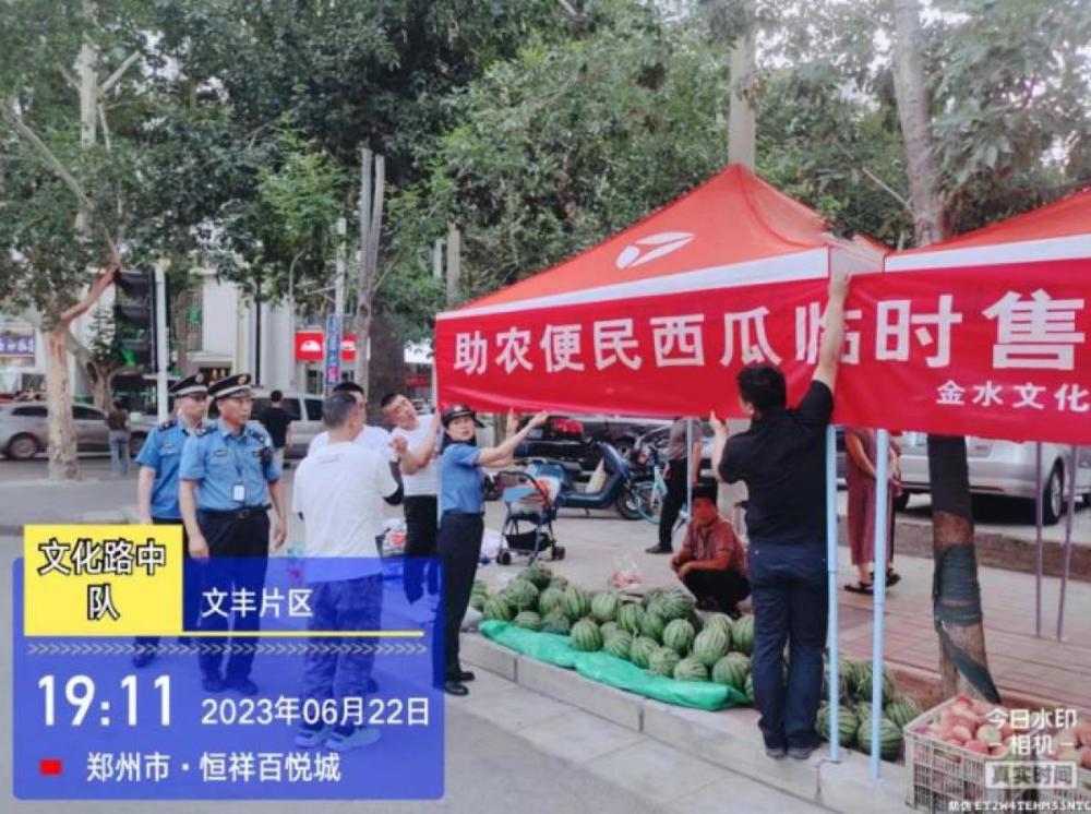 日前,为方便瓜农售瓜、市民买瓜,郑州市金水区城市综合执法局坚持“心中有人民 执法有温度”,在辖区设置32处便民西瓜售卖点,供瓜农售卖时令瓜果,让城市文明更有温度。