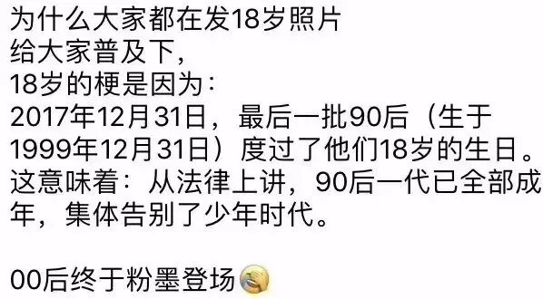 2018的到来意味着最后一批90后已经全部成年,告别18岁,00后粉墨登场,引起了80和90后们集体回忆青春年华。
