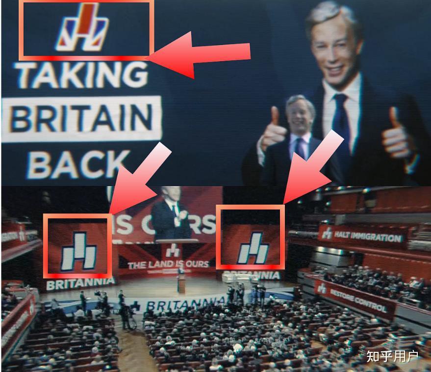 预示未来的镜头中,迈克尔·斯马特使用的标识类似纳粹符号,也和《黑镜》第二季第2集《白熊》中的符号相似。