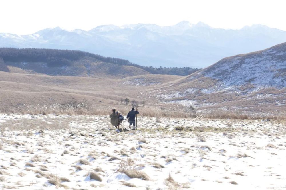 傲慢的人类中心视角给眼前的事物蒙蔽上了一层层精神锈斑,而电影镜头,这看似冷冰冰的机械眼,却能让我们剥离掉那些固有的偏见和功利心,重新感受眼前之物。“被大自然触动到的体验,都是通过镜头发现的”。三宅用iPhone拍摄了《无言日记》的系列纪录片。他像一位影像收藏家,将那些吉光片羽的时光小心翼翼地收纳在镜头之中。《野性之旅》当中的采集植物标本的男女主角们,透过镜头新奇地发现那些植物、石头,它们和平时肉眼所见相比,显得如此的多姿多彩。《密使与看守人》看似是一部古装片,一部追逐戏,但是这些都无情地溶解在了广袤无际的雪景当中。我们看到的、听到的、体感到的接近于一系列光与影、声音与温度的感官的交织。三宅说:他希望演员成为动物一样。他或许想说,希望演员在大自然当中,对于所见所闻所感做出最生动最直觉的反应吧,而这不比那些虚假、造作的紧张感来得更为惊心动魄?!