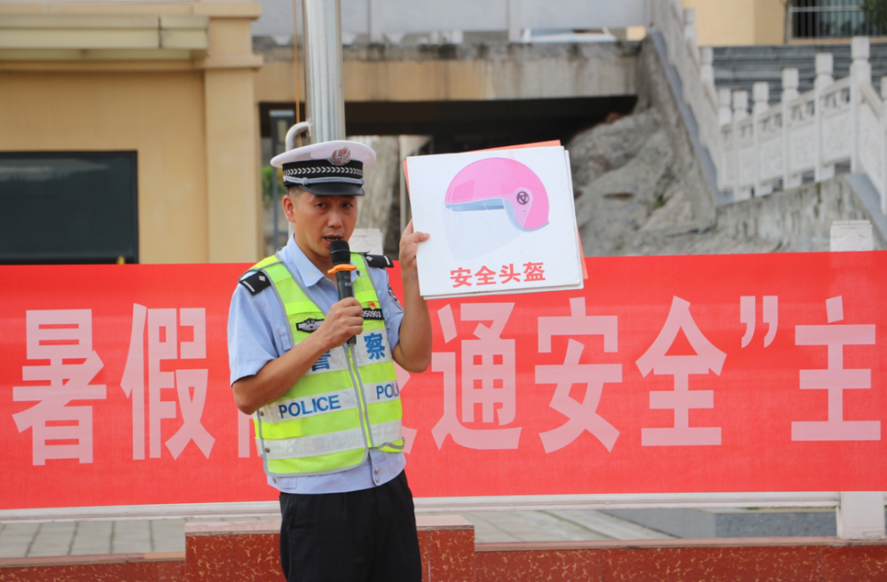 7月4日,黔东南州公安交通管理局榕江县公安交警大队组织警力走进辖区古州镇第四小学,开展“暑假,交通安全不放假”主题宣传教育活动。