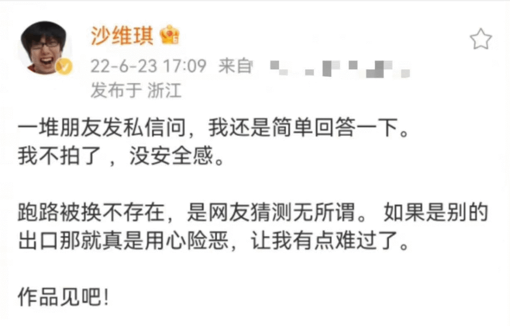 此外,《偷偷藏不住》还曾经历换导演风波。原定导演沙维琪在社交平台公开回应不拍是因为“没安全感”。不知道是否是对剧本不满意,因此辞去了导演职务。