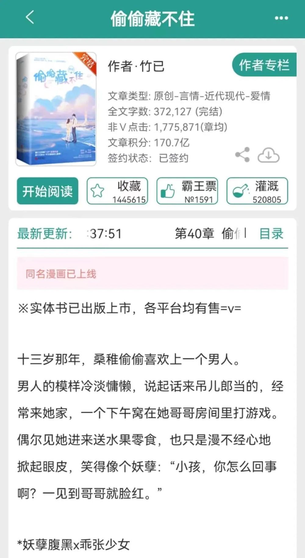 值得一提的是,《偷偷藏不住》其实是以同名小说改编的影视剧,小说在晋江文学城言情榜单名次很高,拥有大量书粉,其同名广播剧、漫画等衍生品也早已上市,热度也都不错。因此,《偷偷藏不住》IP影视化,应该说是顺理成章。