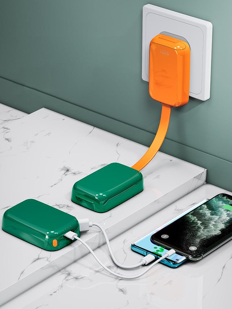 这是一个充电宝,又不是,因为它集合了“充电宝+充电器+数据线+手机支架+收纳”等功能,一体化集成式的结构专为出行而设计,让你不会因为需要带很多手机配件而凌乱,出门时随手抓起它,全部就够了。