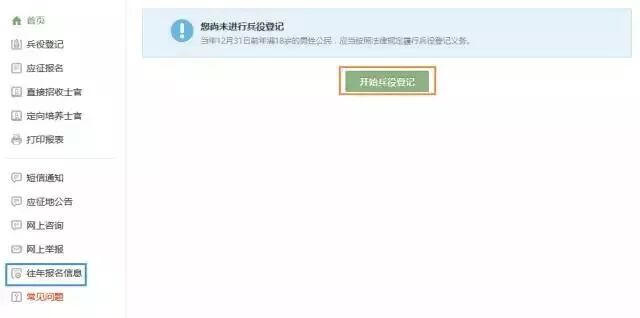 登录系统以后,点击右侧的“开始兵役登记”进行报名工作。