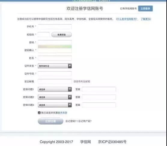 进行注册时,手机号即是账号,请牢记账号、密码。填写后,点击“立即注册” 。