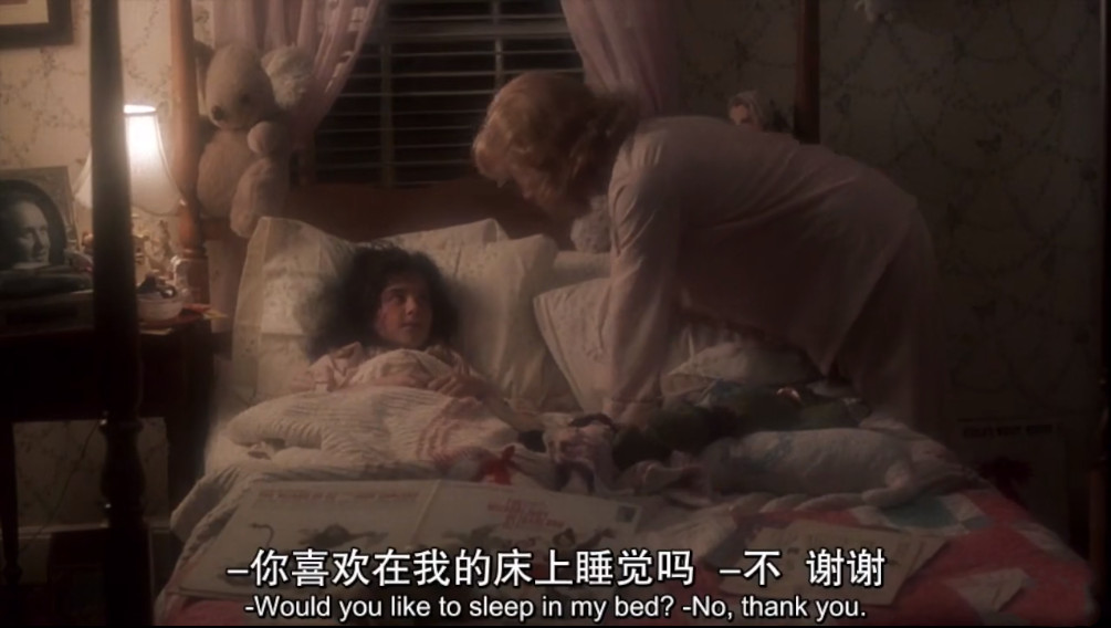 女儿艾玛从小就是母亲奥罗拉的掌上明珠,父亲早逝,母女俩相依为命。这个母亲的性格设定很有趣,她从小就是小公主一样的性格,哪怕是有了女儿依然不敢自己一个人睡。