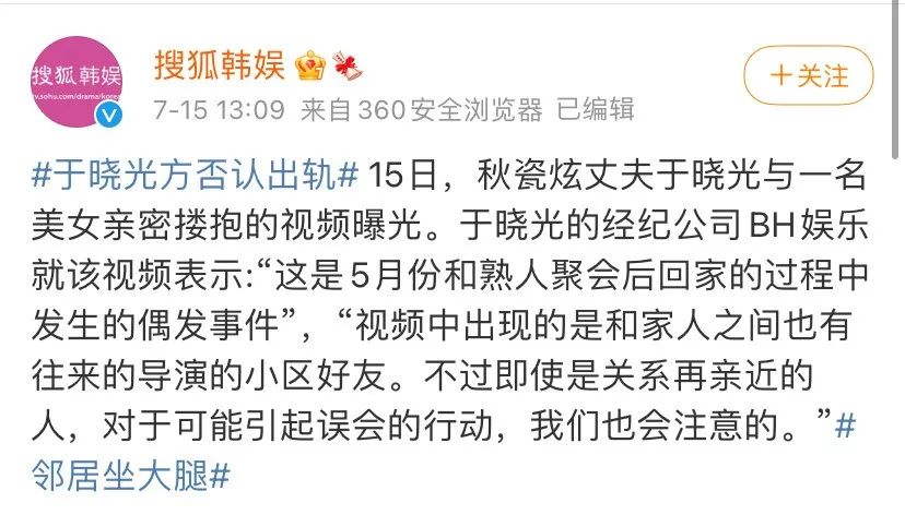 今天下午,于晓光的经纪公司BH娱乐对此视频发表声明: