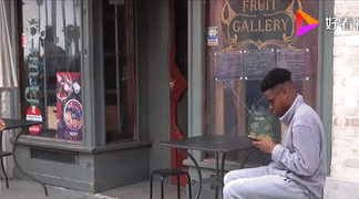 重掌出击:一位正在玩手机的黑人小哥被陌生美女坐大腿后,抬手就是一掌,把美女推出好远,并愤怒起身,摆起打人的架势。