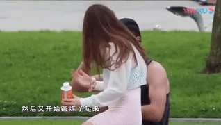 一位正在健身的大哥则把美女当“器械”,还要求她换条腿坐,然后继续健身。