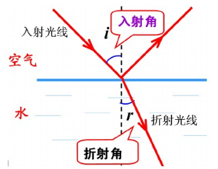 不同介质对光的折射程度是不同的,取决于该介质的折射率,空气的折射率约是1,水的折射率约是1.33,透明玻璃的折射率约是1.5。