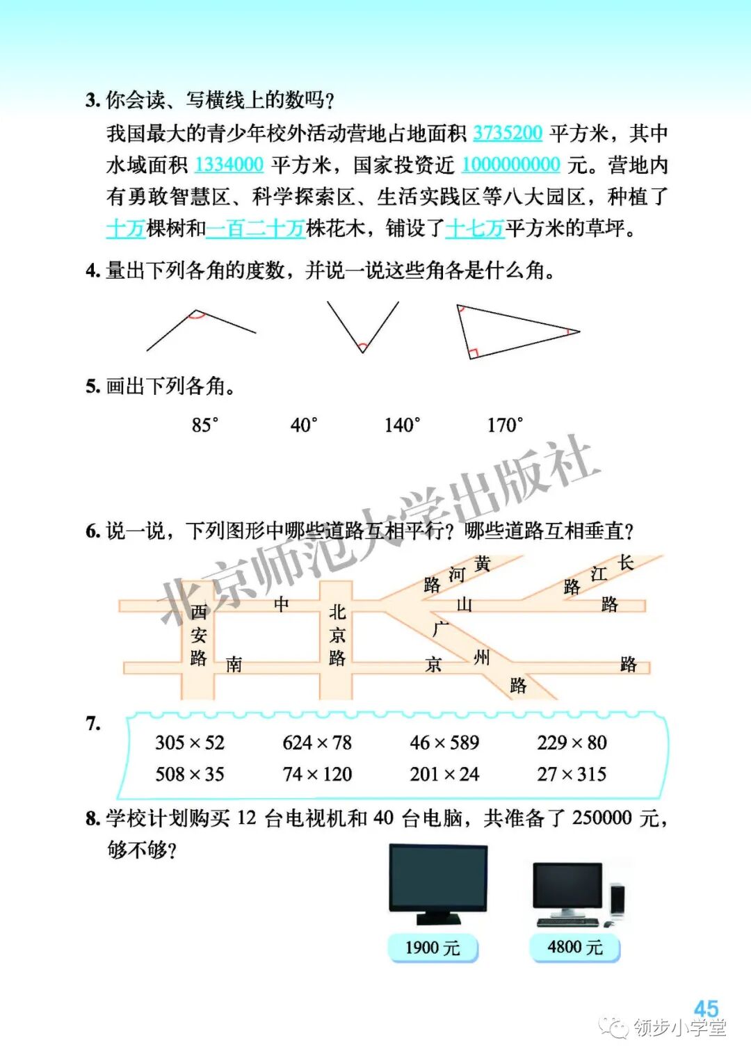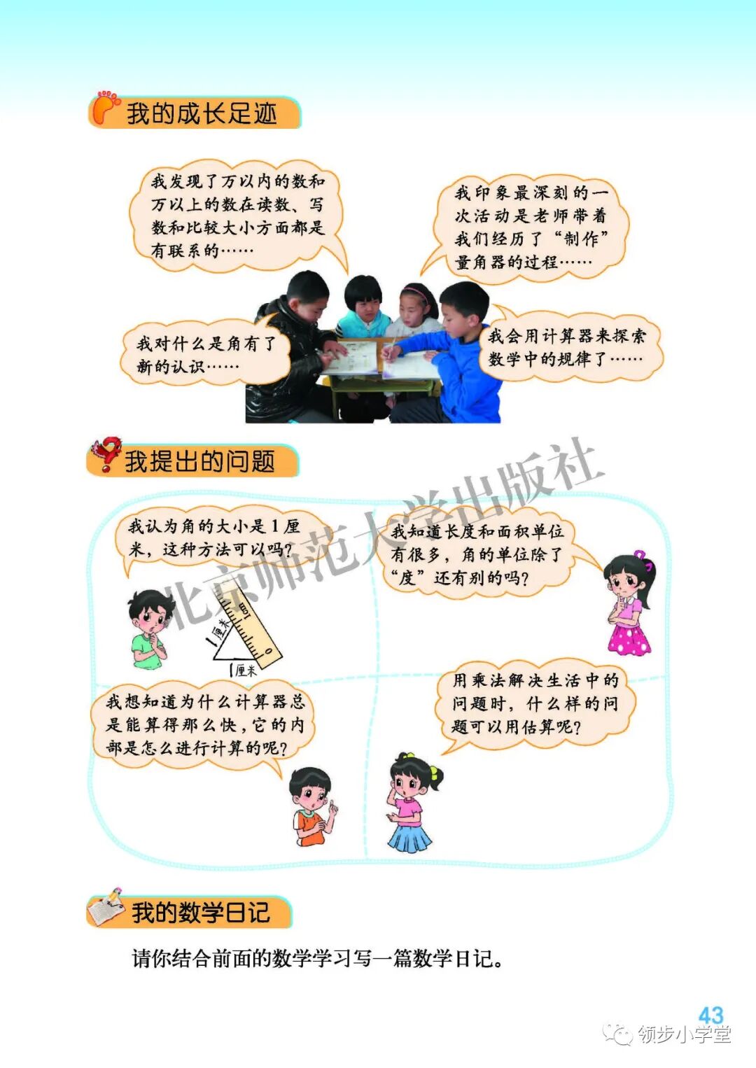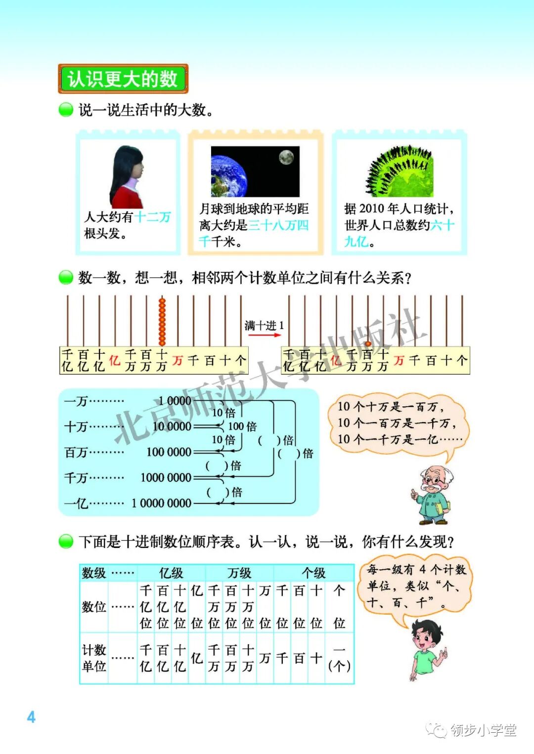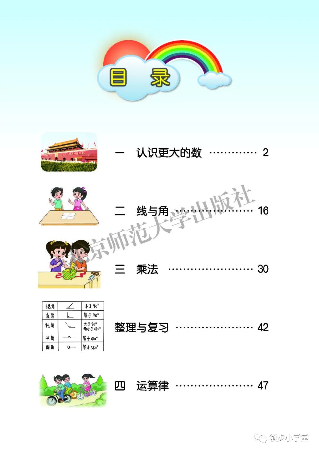 北师大版小学四年级数学上册,高清电子课本,可下载
