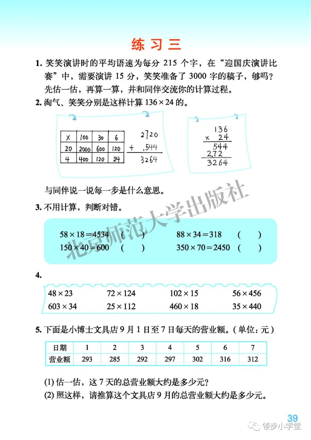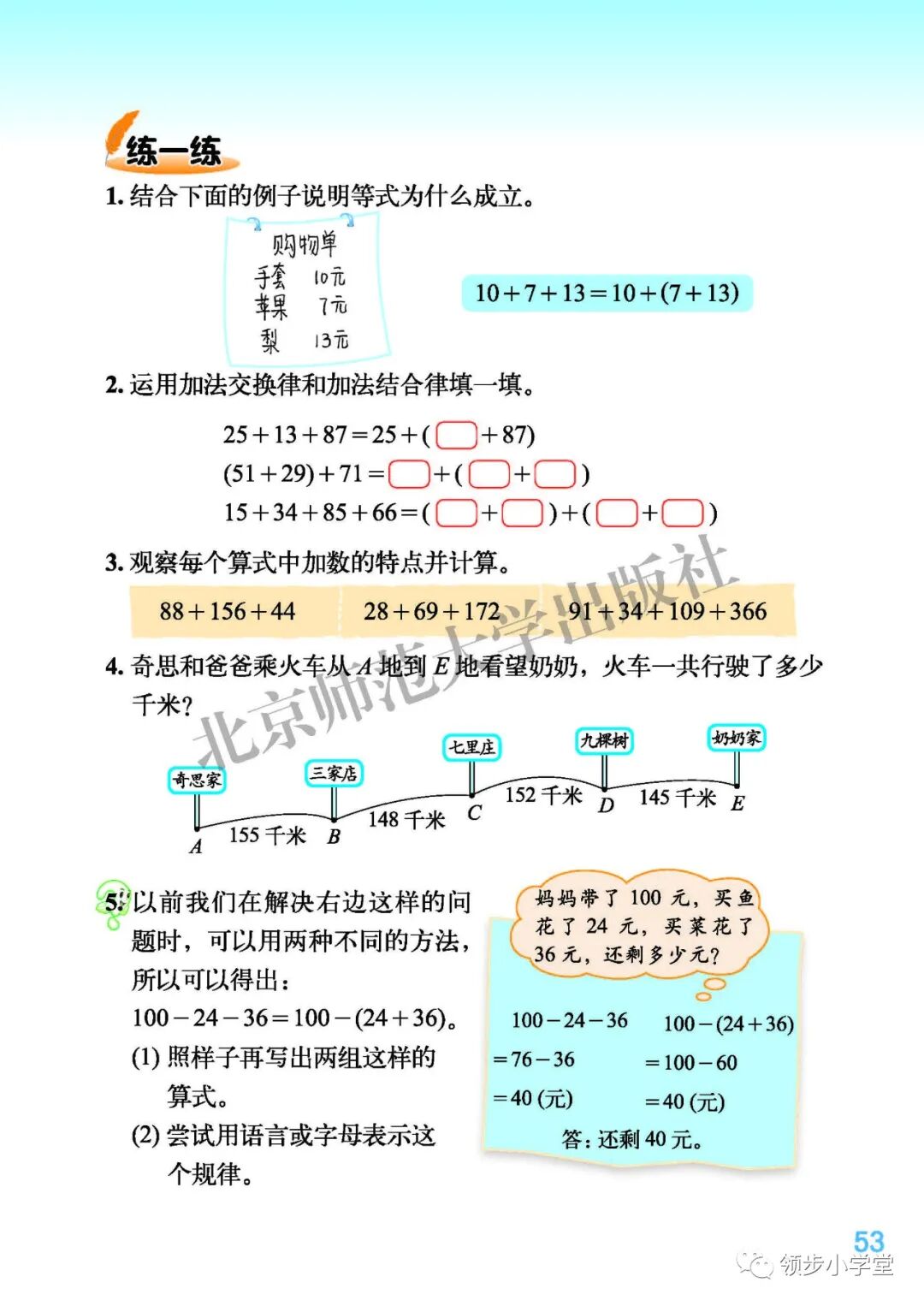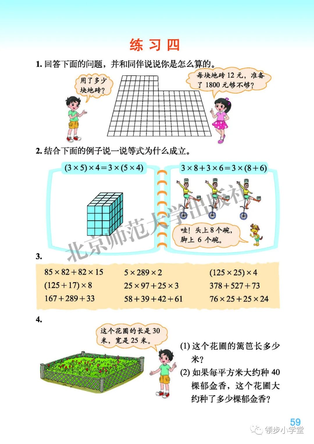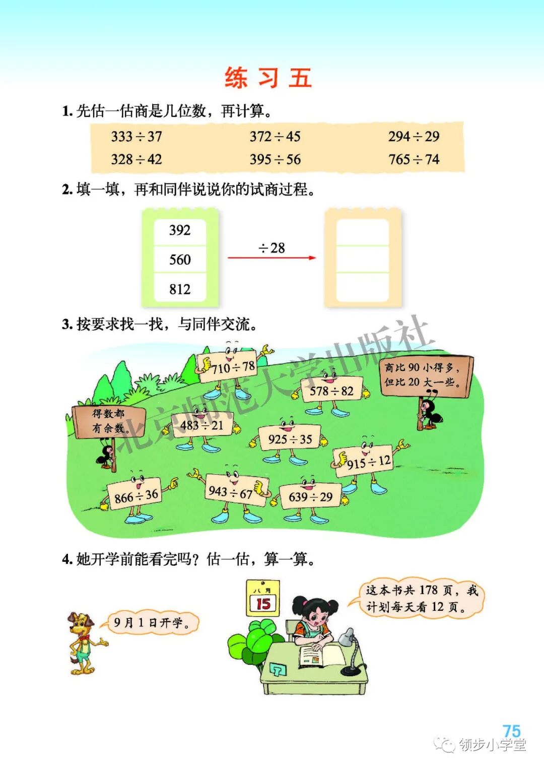 北师大版小学四年级数学上册,高清电子课本,可下载