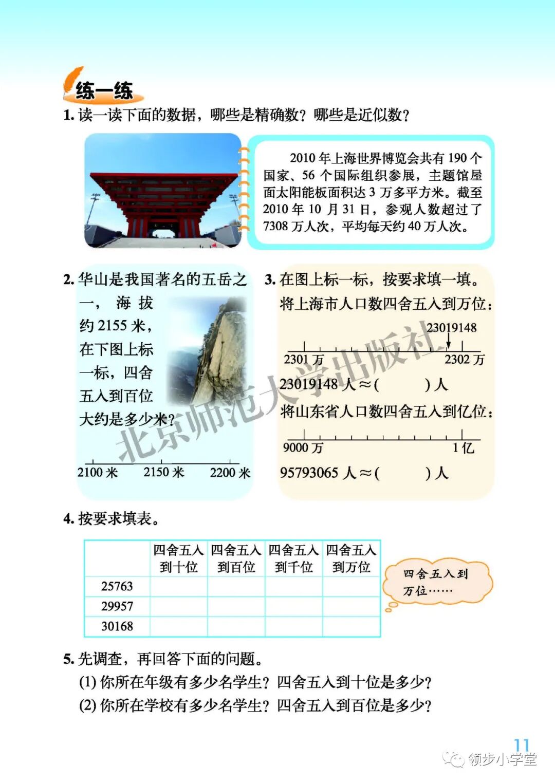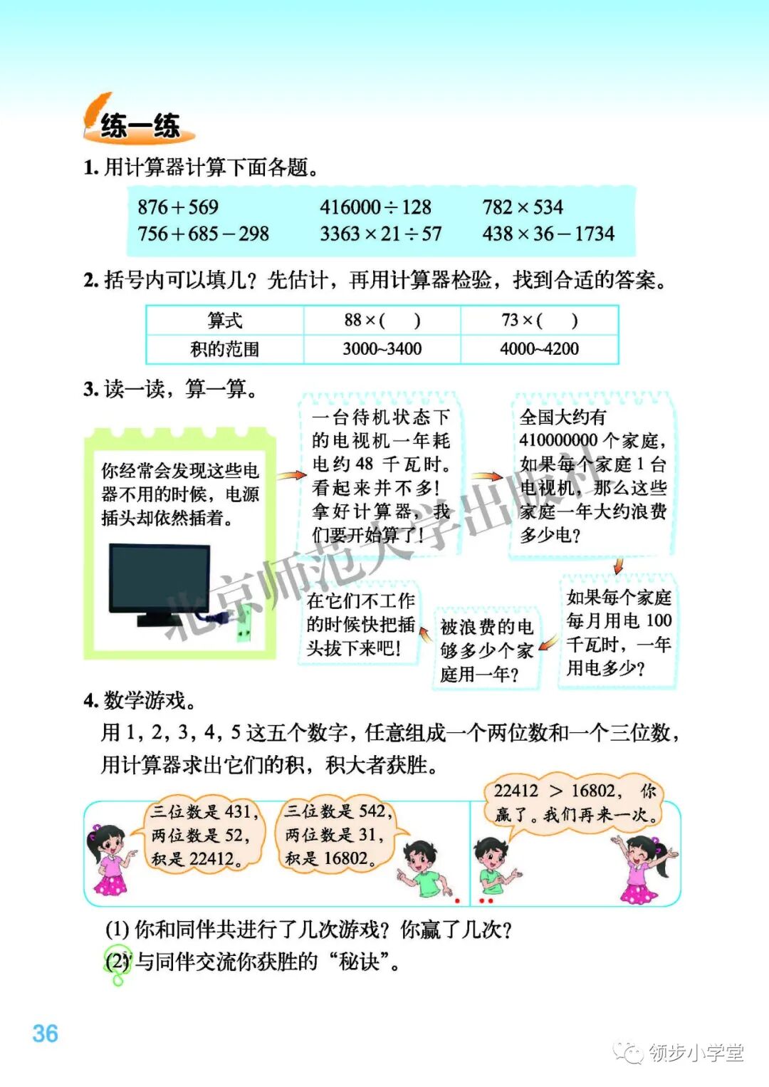 手机访问:wap.265xx.com北师大版小学四年级数学上册,高清电子课本,可下载