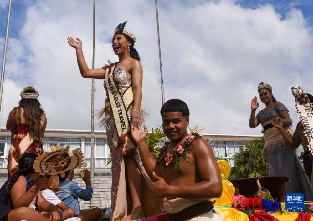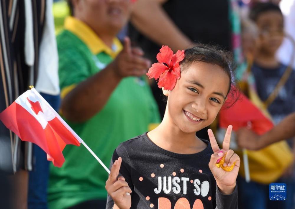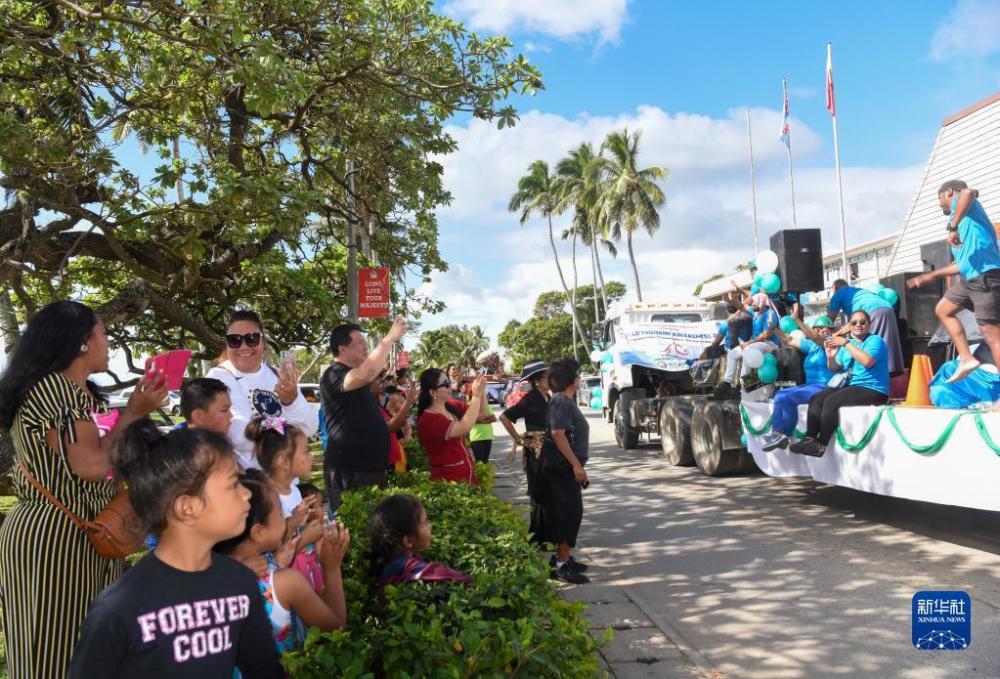 7月4日,人们在汤加首都努库阿洛法观看花车游行。