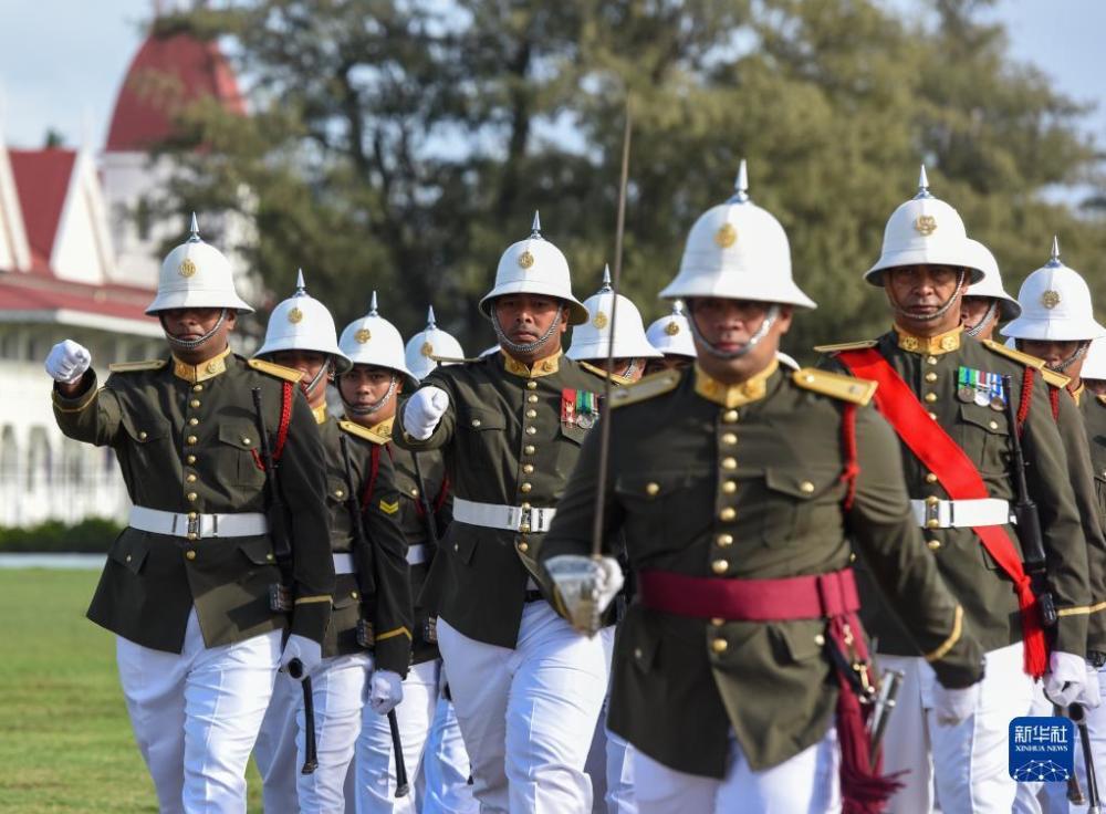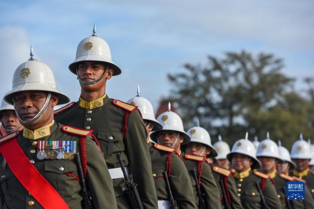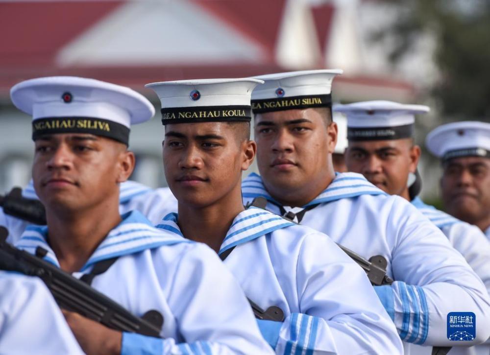 7月4日,军人在汤加首都努库阿洛法参加阅兵式。