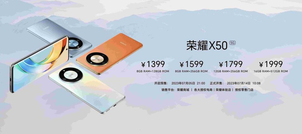 X 16 2023、荣耀平板X8Pro等荣耀X系列家族新品集体亮相。作为荣耀X系列十周年登峰之作,荣耀X50搭载档位首发1.5K超清护眼硬核曲屏、5800mAh超耐久大电池、首发新一代骁龙6处理器、一亿像素大底主摄、全新一代MagicOS操作系统、最高16GB+512GB超大内存。荣耀X50售价1399元起,于7月5日21:00开启预售,7月14日10:08正式开售。