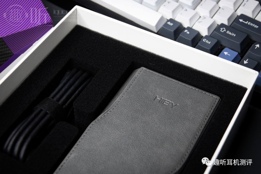 配件方面,作为一个成熟的中端播放器,一些数据线是自然有的,同时也有一个质感不错的皮套。皮套颜色与机身颜色相对应,黑色机型搭配灰色,紫色则也是紫色的皮套,但是在皮套上下都没有封闭的部分,我还是更希望能够有一些保护的部分。