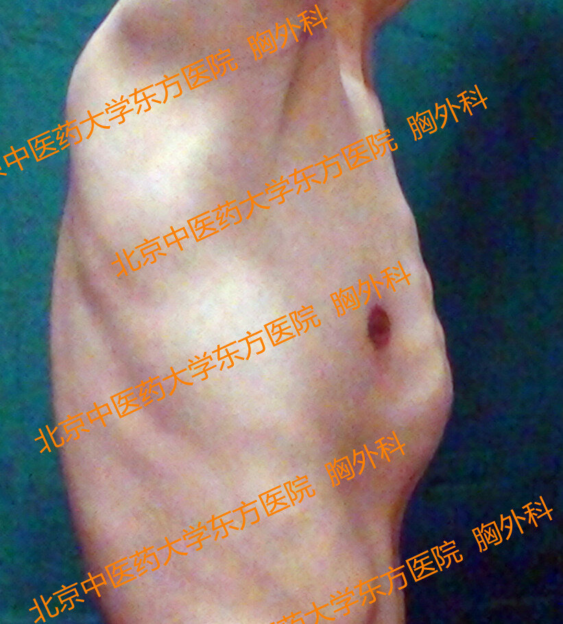 Ⅱ型:非对称性畸形,较少见,占9%。表现为一侧肋软骨向前突,对侧肋软骨正常或接近正常。