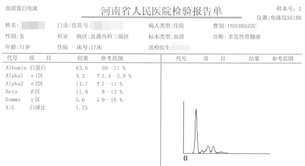 多发性骨髓瘤是一种血液系统恶性肿瘤,以骨髓中存在恶性克隆性浆细胞为特征,这些浆细胞通常分泌异常的免疫球蛋白导致单克隆性丙种球蛋白病。这种血清蛋白常以完整型(重链+轻链)或轻链型存在,尿中也可存在完整型或轻链型的免疫球蛋白。因此,血清和/或尿中检测到单克隆免疫球蛋白是多发性骨髓瘤(MM)的典型特征之一。