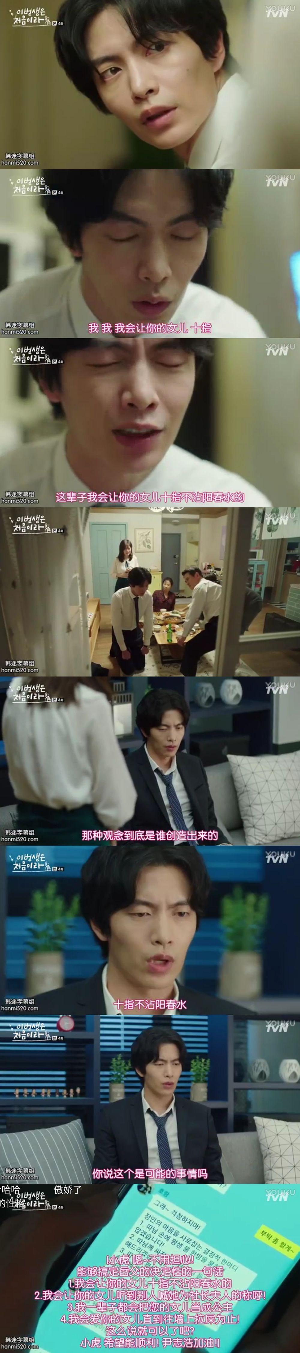 回到剧本身,虽然志浩和世熙都坚持说对方不是自己的理想型,可还是莫名很合拍的。喜欢看足球比赛,喜欢小动物,喜欢干干净净,经济观念也没有冲突。世熙嘴上说对志浩没有感情,但志浩说啥他都觉得对,例如在她爸爸面前下跪及说出那些他死都不想说的话。而且还把最通风(?)的房间留给她用,哈哈哈差点笑崩。编剧还是埋下了许多感情线的伏笔,所以乖巧状坐等南世熙打脸(拜托一定要狠狠打 )。