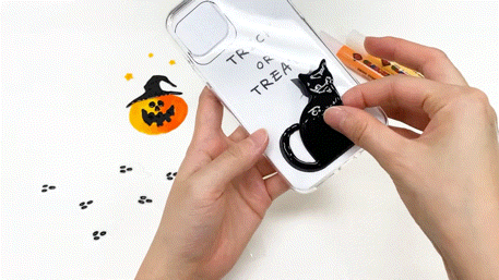 然后把风干的图案,从塑料纸上撕下来,贴在手机壳上。如果还想继续装饰的话,可以将图样放在手机壳里面,在手机壳上进行描绘。