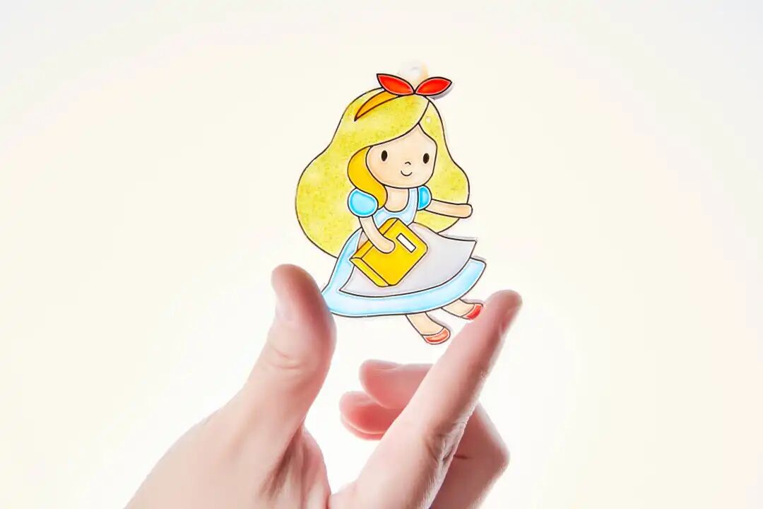 它可以突破材料的限制,除了在透明挂件上涂色之外,还可以直接在塑料纸上进行作画。
