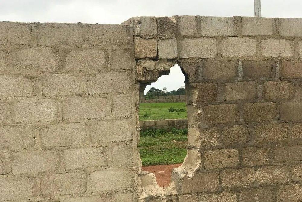 尼日利亚一所高中,外墙上被绑匪炸出窟窿
