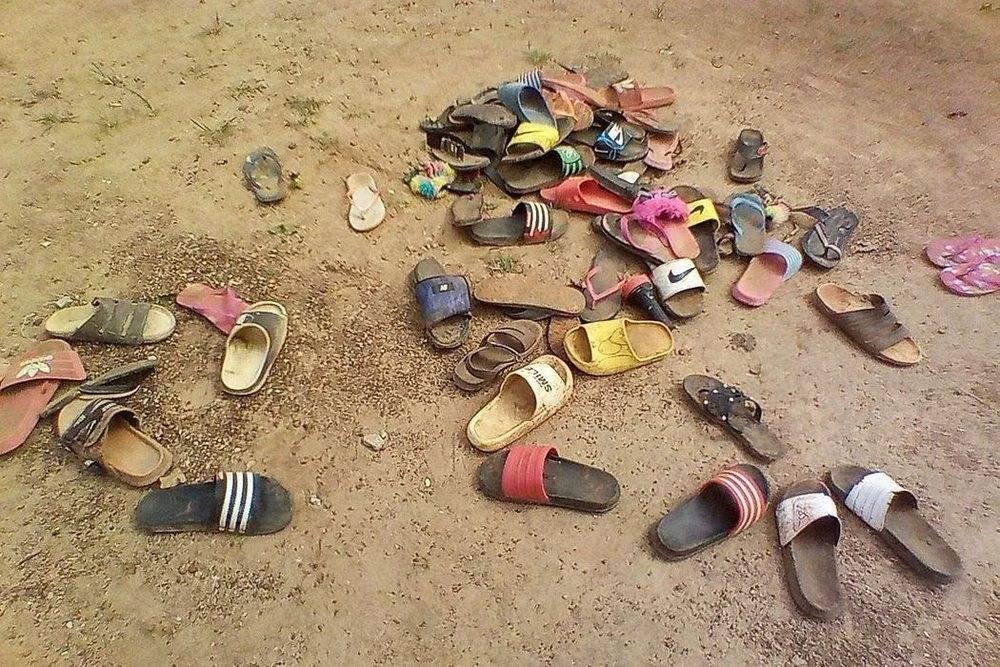 一所学校内,被绑走的学生们掉落的拖鞋