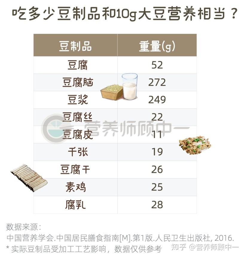 50克黄豆相当于145克北豆腐、280克南豆腐、730克豆浆、110克豆腐干、40克腐竹等。