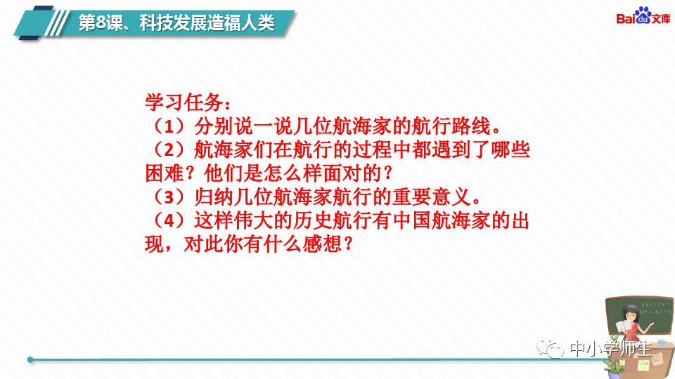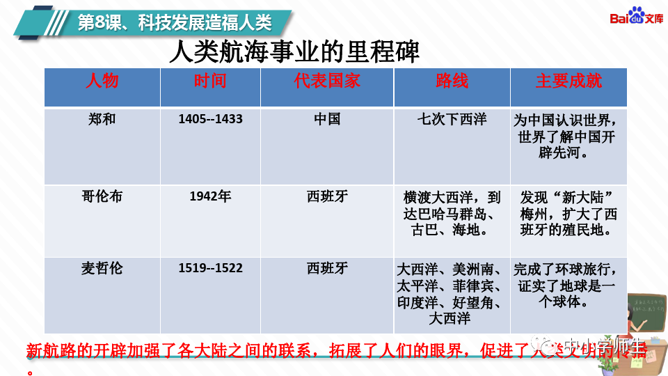 2. 航海家的积极探索:你知道哪些著名的航海家?收集相关资料, 说说它们的故事。根据交流出示相关资料