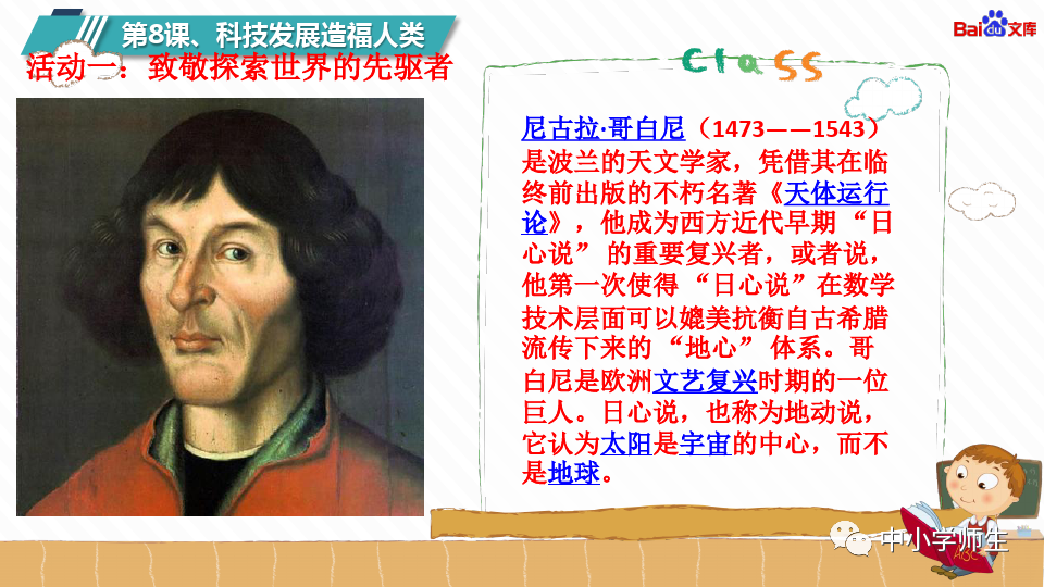 2. 补充背景:了解哥白尼提出“日心说” 的时代背景师生讨论:哥白尼提出“日心说”对于人类认识宇宙有着怎样的影响?