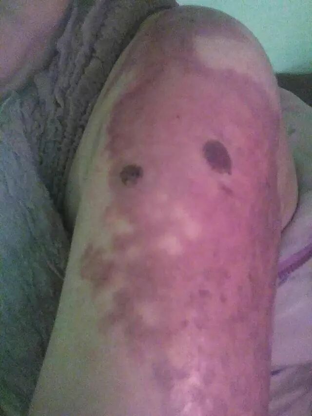 参加南阳拯救104论坛分享后,回到家,我胳膊上的烫伤面开始结痂。3月份又参加了郑州第19届拯救104论坛分享后,伤势明显好转,恢复很快,但是疤痕很像一个水宝宝的模样。