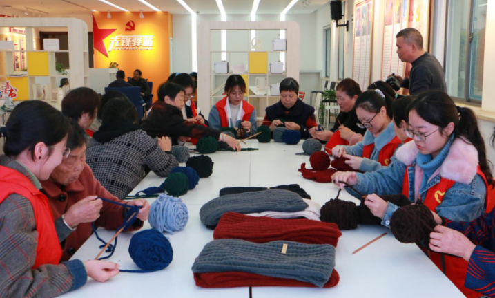 图 | 文学院联合官塘桥远洋社区举办“晚来天欲雪,尚有寒衣至”织围巾活动