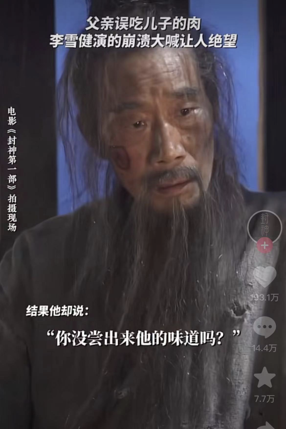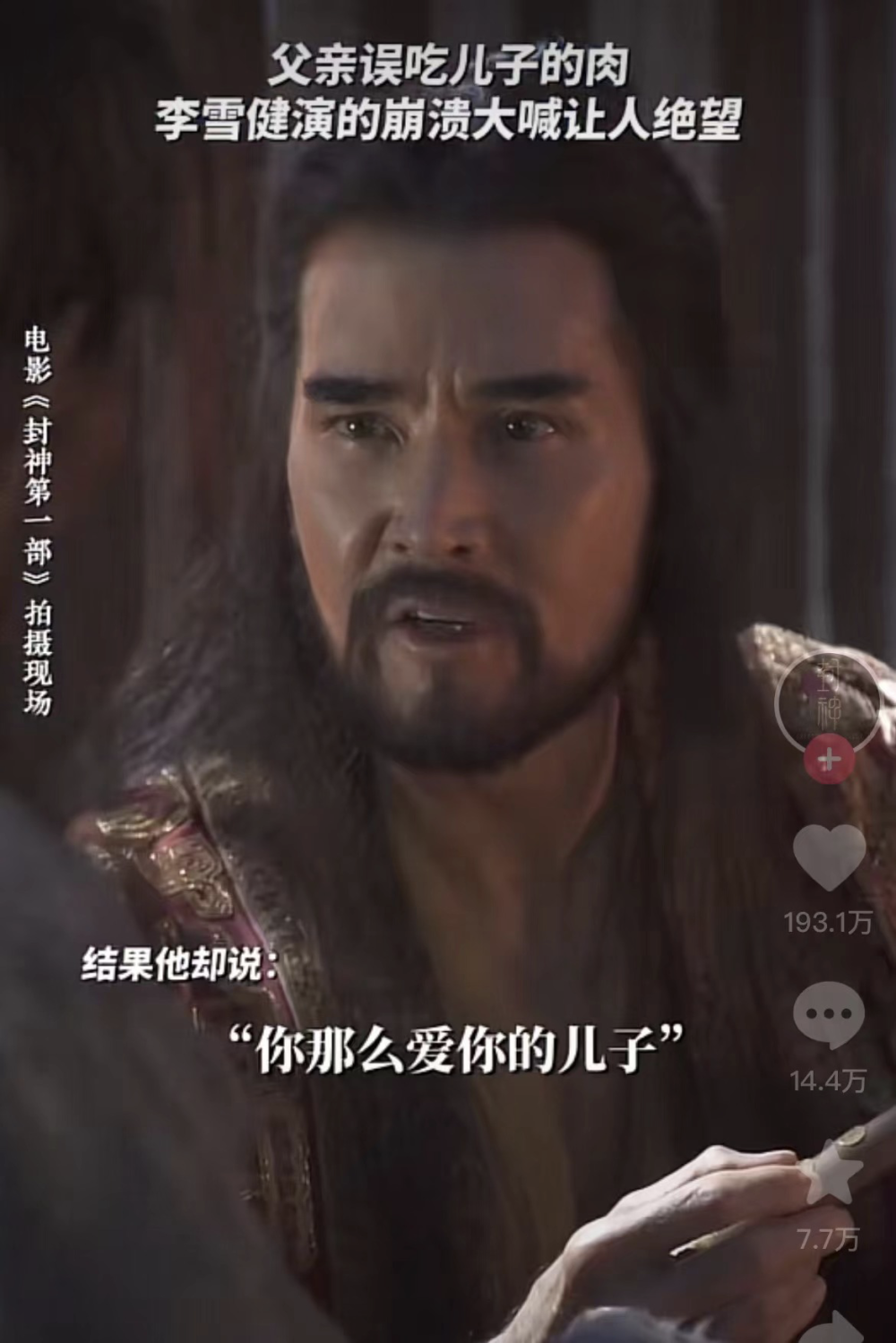 一个镜头就是,他杀了姬昌的儿子,做成了肉,喂给姬昌吃的时候。
