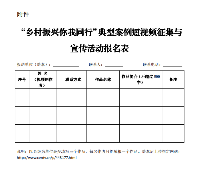附件:“乡村振兴你我同行”典型案例短视频征集与宣传活动报名表