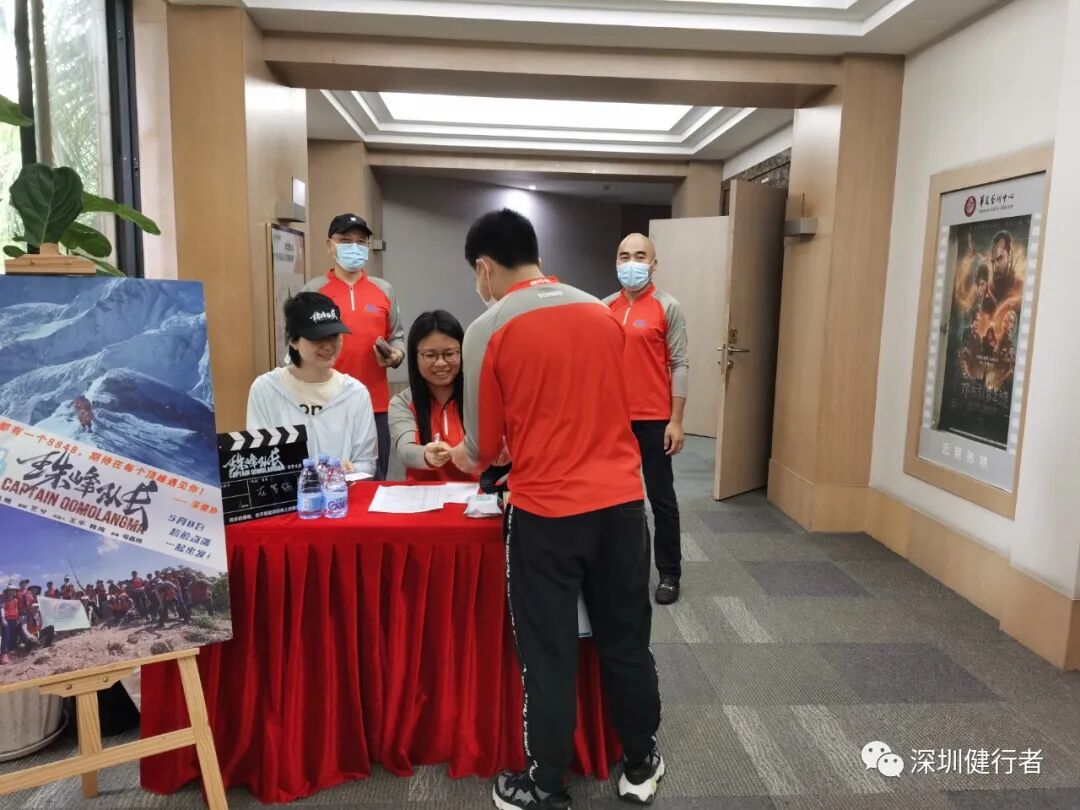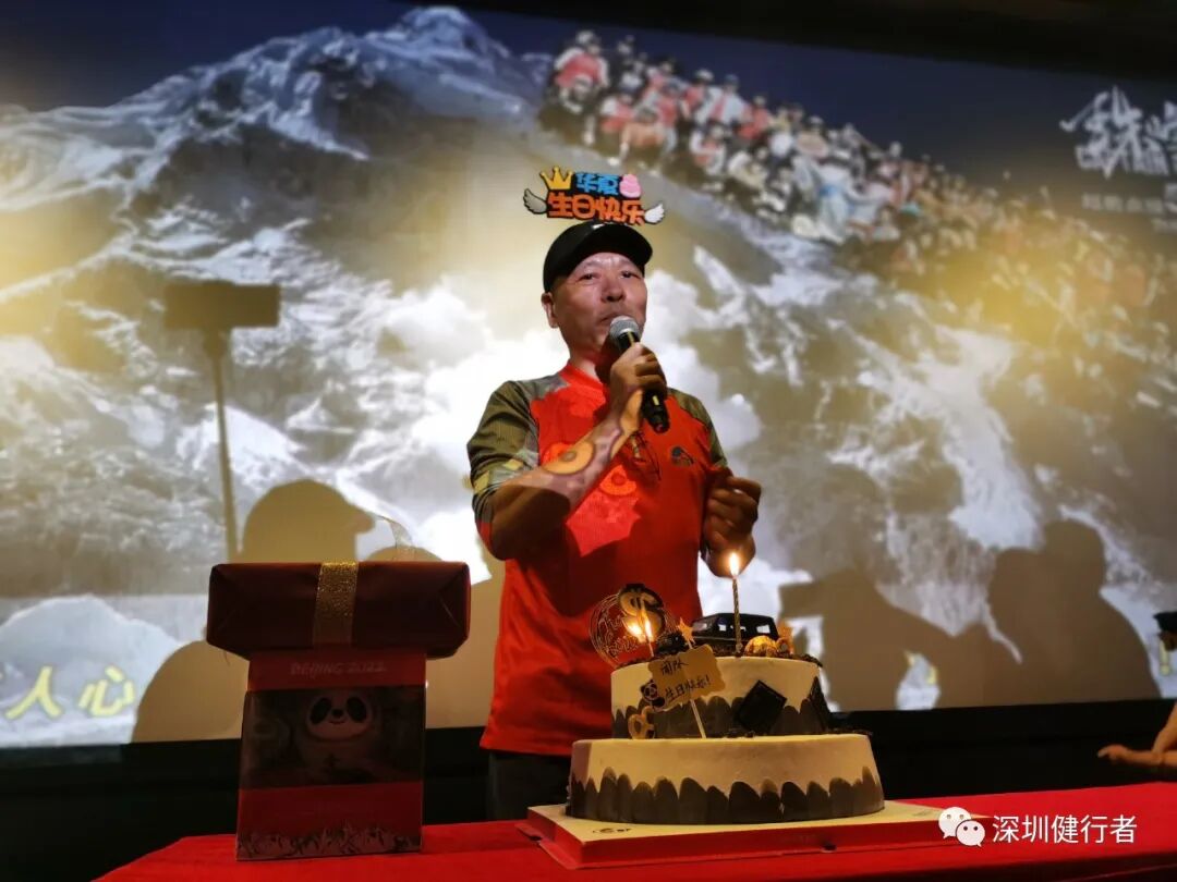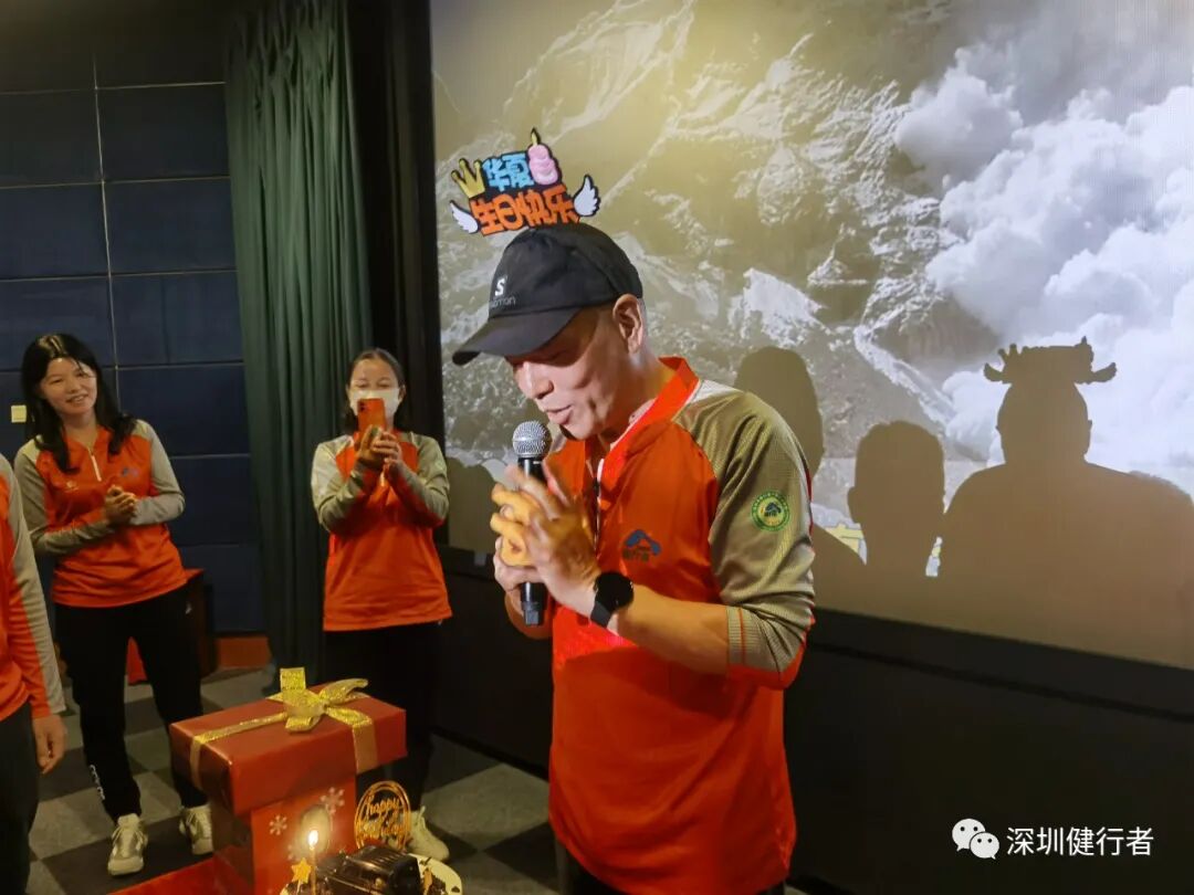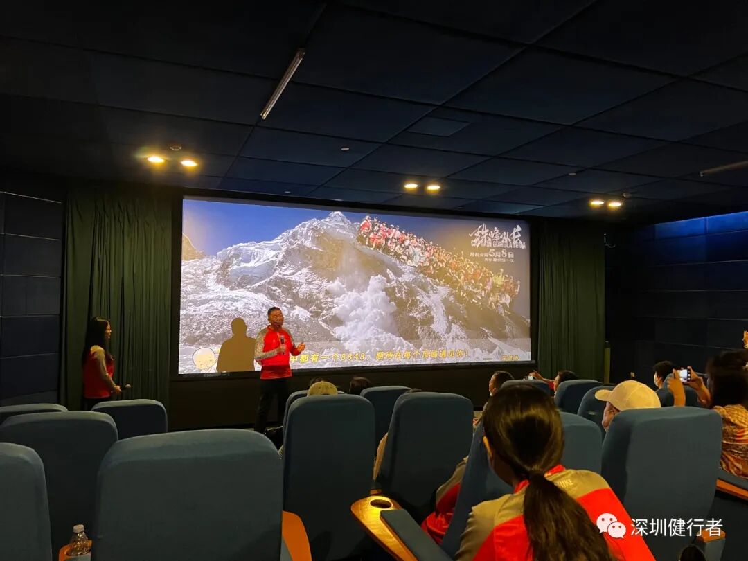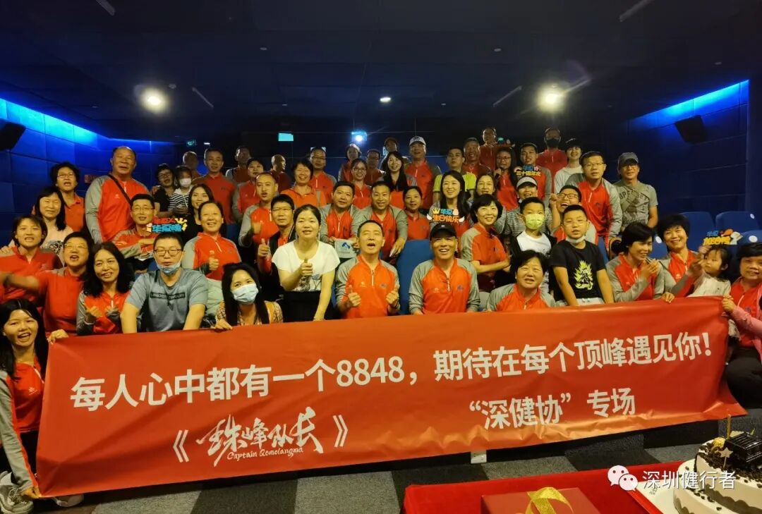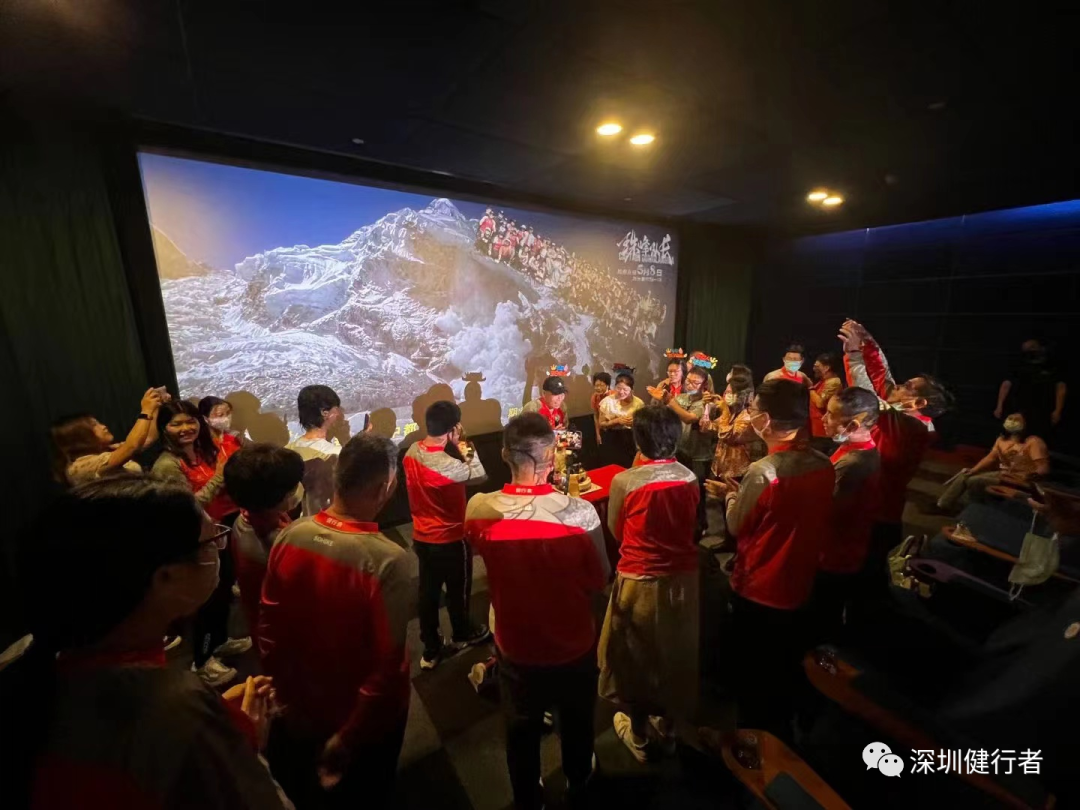 健协自上次团看《Free Solo》(徒手攀岩)之后,再次组织影院团看。这次是纪实片《珠峰队长》,还是新潮的超前点映。半个月前看到片子的报道,马上转到健协规划局,亚湘很快找到票务渠道,交给彩霞联系包场事宜,很快落实下来,赶上了超前点映,60座的影院专属包场,自设专有展板、横幅和映前映后定格图,优越感满满!彩霞一手包办、P图高手文丽助力,各种文宣物料一一搞掂,高效优质!还向院方争取了许多福利(饮水、更多座位、点映明信片、台历、片后1小时的分享……),交了120分的功课!片子是川藏队2019年珠峰南坡登顶全程自己拍摄的,非常自然、真实。从C1、C2营地闯恐怖山谷、扎营C3、C4营地等待窗口期,队长果断决定抢先登顶,顺利避开希拉里台阶的拥堵,成为年度首登的队伍。所有镜头都不加修饰的真实,临场感满满!《珠峰队长》第一视角的记录,激起了健行者强烈的心灵共鸣!观影后的分享会,大家踊跃谈感想,说出了许多健行者的箴言。端木说,如果没有一些值得回忆的经历和故事,就算到巴马长寿村养老,活到一百岁,那也没什么意思。就像片中队员说的,登山的辛苦只是短暂的,而美好的回忆是一辈子的。登山就是这样的,让你在攀登的过程中累积余生回忆的素材,这些回忆能让你不断感受到人生的美好、朋友的重要。其实每位健行者心中都有一个珠峰,我们的每一次攀登都是宝贵的人生经历,在每个顶峰的相遇,都是健行者一辈子分享的回忆!分享会后,细心的彩霞还安排了一个大惊喜,为我补了一个有礼物有蛋糕有朋友的生日会,非常的珍贵!感谢大家陪伴的每个生日!
