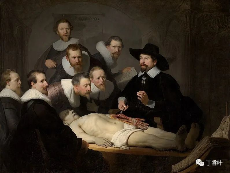 Rembrandt的《Nicolaes Tulp的解剖学课》;描绘了一个使用尸体的解剖演示。