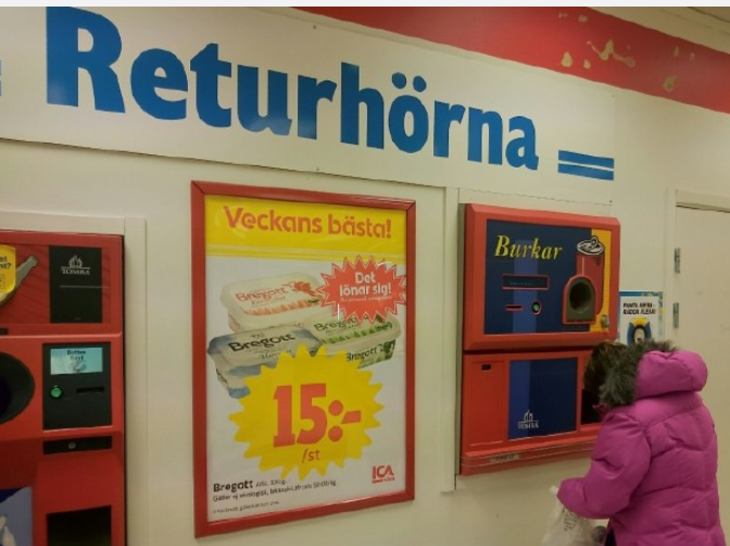 首先在售卖饮料时,会把饮料瓶成本加上去。这样,大多消费者会主动把瓶子保留下来,下去去超市的时候再把塑料瓶放入回收机内,机器直接就按照个数给予现金(硬币),或者是超市内可以购买的等价coupon,每个瓶子或者易拉罐一般是0.5-1元克朗。