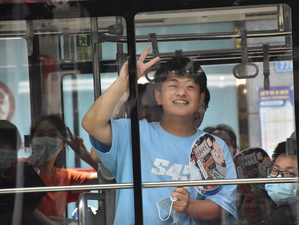 △早上7:40分在公交司机的安全护送下考生到达考点