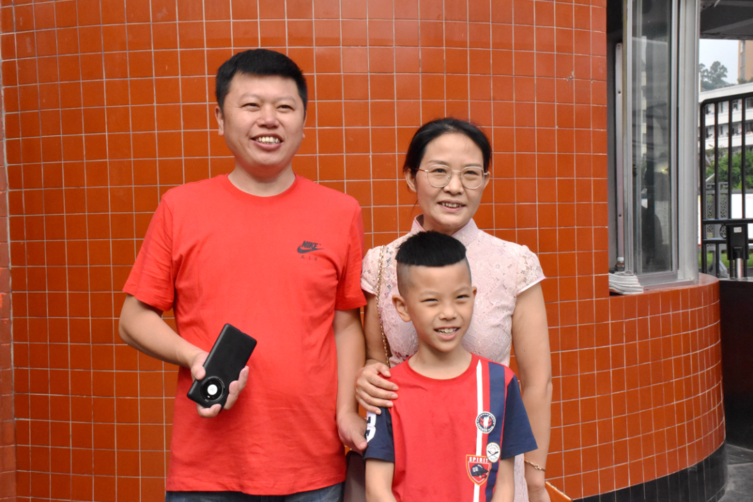 △遂中考点,小学的弟弟和父母正在等待考生出来