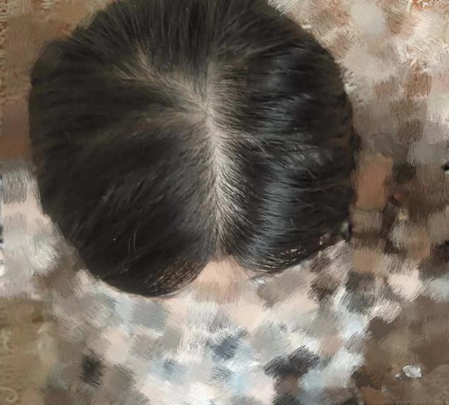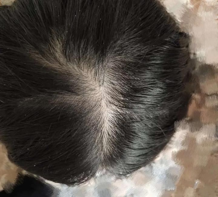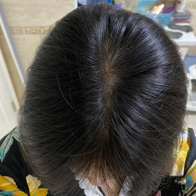但后来,我看了整个头部的照片,并没有出现脱发的情况,头发非常健康。(如下图)