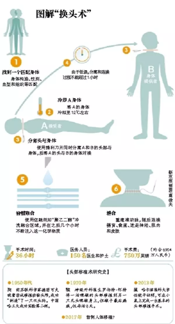 今年2月,他在《神经外科国际杂志》曾发表文章,讲解了换头术的步骤。