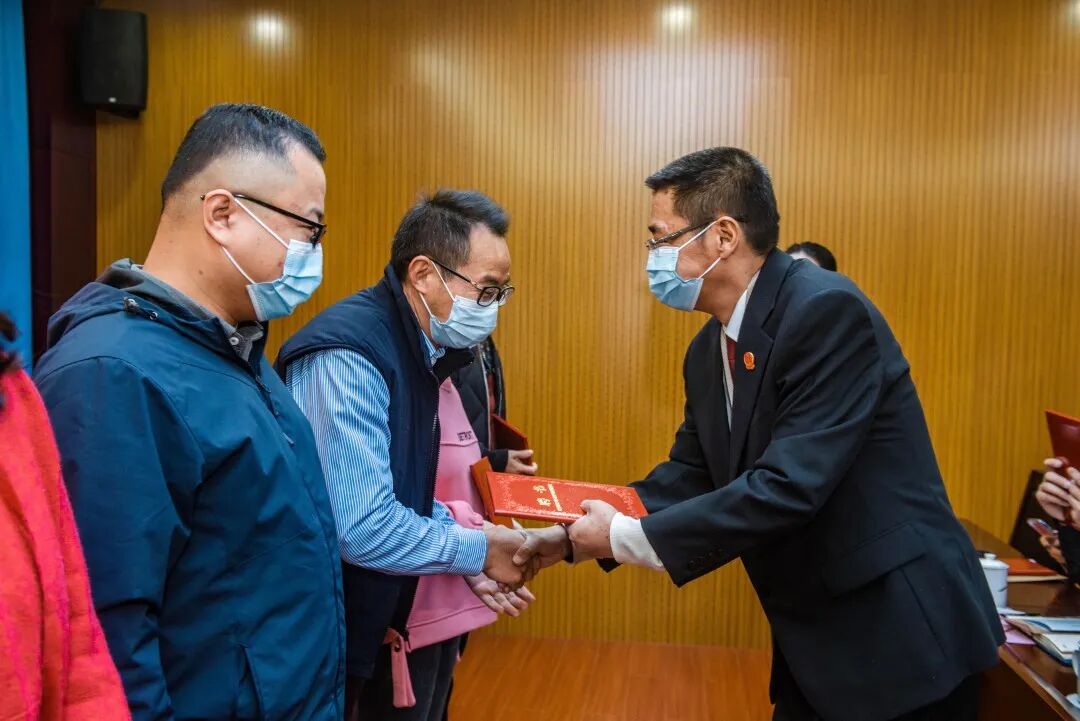 湖里区检察院第三检察部代萍竹主任宣读聘任文件,并由林雪峰副检察长、古汉民专委、林文雄书记为合适成年人颁发聘书。