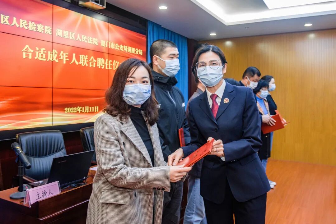 本次会议是湖里区公、检、法三家单位首次共同聘任合适成年人,为落实同一名合适成年人参与讯问、审判的全过程提供了队伍保障,为完善合适成年人参与司法机关办案的工作流程和调度机制夯实了基础。