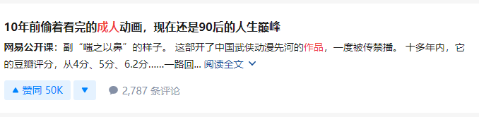 那只能去制造一些糊弄普通人咯,比如“成人”二字就是最好的流量春药,随便搜搜看,从微信到知乎到百家号到头条,以这个词喧宾夺主的比比皆是: