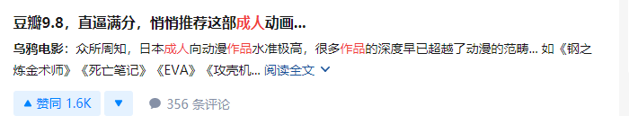 马赛克从来不在视网膜里,而是在每个人的心里。就算在线网站上大部分动画都是没有马赛克的健全动画,公众号依然要大手一挥在某些人心里去植入一道“成人”的成见,来以此收割受众。