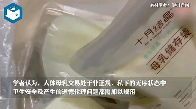 近日,有媒体爆出有些宝妈在社交平台上以每袋几十元价格出售冷冻人乳,有些买家是为了给孩子喂奶,有些是相信“人乳可祛痘”,还有一些是觉得“人乳大补”的“成年婴儿”。